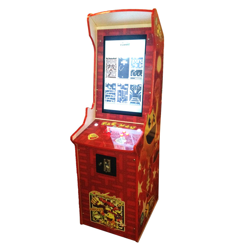 This is our newest and best 60 in 1 vertical arcade cabinet. It features a wide screen LED tv with crisp 720p picture. This come standard with our 60:1 classic arcade board featuring 60 of your favorite 80’s classics. Take a step back to yesteryear with pac man , galaga, space invaders, dig dug, ms pac man, zaxxon, frogger and many more. See complete game list in parts where the 60:1 game board is located. This classic arcade video game come standard with 1 smart comparative coin mechanism that ships standard to accept US quarters but can be easily changed to Tokens or any other coin you wish. Your nations currency can easily be substituted for the US quarter without any disassembly at all, just spring loaded comparator slot where your desired coin is inserted as a sample.